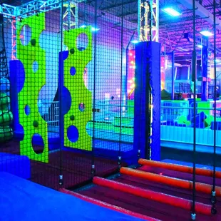 Great place to take kids, especially when it's too hot for outside activities. These 105 heat factor days keep the summer kids indoors, and needing physical activity. There are plenty of trampolines, a ninja obstacle course, and lots of other fun areas. The workers are very nice, and helpful for the children, and I observed workers doing a lot of walking around checking on kids, as well as a uniformed police officer hanging out. The restrooms were pretty gross, but kids you know. They had an eating area, complete with adult drinks. The food was just ok. It's mostly things kids like. They had ice cream too. Seemed like they were short staffed at the food counter but the worker was patient , and kind to the kids ordering. The only think I think they really need are drink machines. It would solve the long waiting period at the counter for a bottle of water. We waited 30 minutes for waters. Too long. Overall a great and fun place.