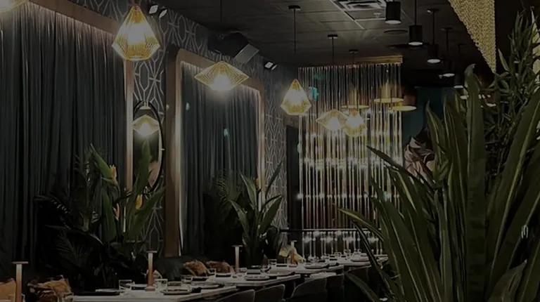 Loved the interior and Loved the service. Such a vibe of mediterranean music/tropical vibe. the emerald hunter green with gold blinged out decor was perfect.Came first with my husband then few weeks after with my family. Each experience was perfect. We were party of 7 and got to sit around the vip area near the dj booth which was a treat. Interior- Mediterranean/Elegant and classy. the hunter green emerald hues, golden lights and greenery made everything so upscaleFood and drinks- On point. I don't deal with alcohol so I got the non alcoholic burano which had small scoops of frozen fruit cubes with peach soda jasmine which was super flavorful. For dinner I had shared my plate with my cousin the fried lamb and ravioli with mushrooms which was so delish! My cousin got the tomohawk as every one shared this huge rib. We also had house fries with truffle oil and topped with parmesan. The service was wonderful as the waitress always checked on us. The only this i would say is that they don't split the bill it has to all go on one check. Other than that the music, food and place a vibe! I will be back.