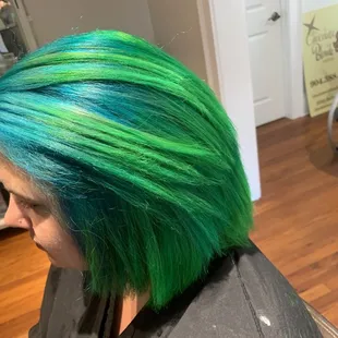 Beige blonde a bob cut and a bit of a peek shave. So I'm love with my cut and color.