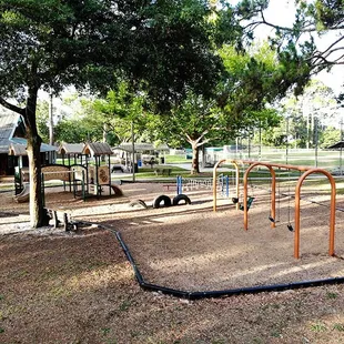 Shad from large trees and gazebos.Public toilets and drinking fountains.Next door to police and fire stations safety is good.Baseball ,soccer and play fieldsBasketball courts in 3 sizes for all kids Playgrounds in 2 sizes for kids and youngstersSwings Tennis court and racket ball also I do believe I recall. AND COOLEST THING IS ..... A FREE bad to the bone skateboard park.Has multi level bowls and curves with bleacher seating and gap shoots.Helmet is required to skate but free to do so at own risk.