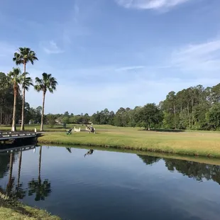 This is a pretty decent golf course located in Fleming Island area, s suburb of Orange Park and greater Jacksonville. Pretty easy directions and access of US HWY 17 or CR 220.There's a bag drop and plenty of parking in their private lot. Afterwards, feel free to take the cart to your car and drop your clubs off.Pro shop is a bit on the smaller side but well stocked with any last minute needs you may have or forgot to throw into your bag. Variety of golf shirts, hats, towels, tees, balls, etc. The course itself is in decent shape overall. Pretty well manicured tee boxes, fairways are cut and maintained so you can find your ball if you end up in the 2nd cut or rough. There's enough water, hazards and dog legs to challenge the your inner self. Don't forget to check the popular websites for last minute deals and discounts. The carts are all equipped with GPS and scorekeepers to make your game more enjoyable.