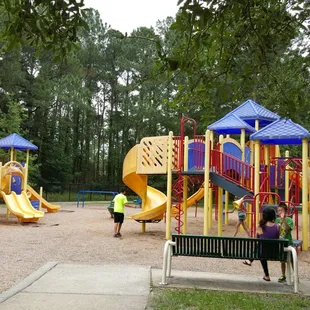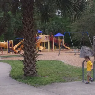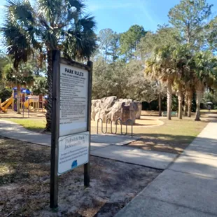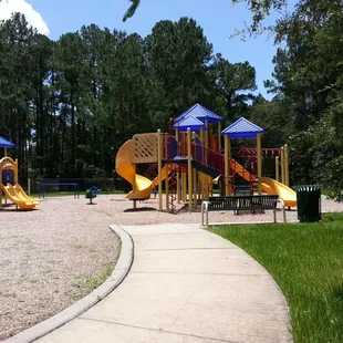 Awesome park tucked away in the back of a neighborhood! They have 2 jungle gyms one for smaller kids, one for biggerRock climbing SwingsWalking pathMultiple toys (like a see saw) Really cute area, and probably my favorite is its nicely shaded!We will definitely go back, my 3 year old loved it!