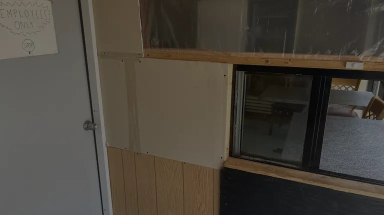 a view of a restaurant counter