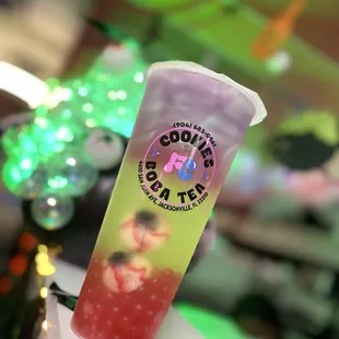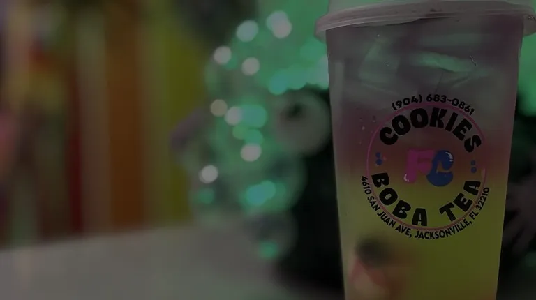 The best random, last minute discovery last week during the hurricane shut downs. I didn't plan to stop in First Coast Cookies only because I didn't know it existed yet. When I hopped on yelp in a new area of Jax to search local tea shops, this cookie place popped up. Cookies and bubble tea... all in one?! When I tell you I practically ran here before they closed at 7pm, I wasn't kidding. The decor once you step inside is so fun! So much detail went into designing this cute shop. The tables are sparkly with glitter resin on top, the cookie counter has faux icing dripping down the side, the entire interior is beautifully decorated in vivid color from top to bottom - literally, the ceiling has a rainbow on it. Not to mention the extra decor they added for Halloween which of course won me over even more since that is my absolute favorite holiday. Before I even tried anything, the amount of detail this place had won me over instantly. I ordered a bubble tea and two big cookies to take home with me. A peanut butter, and a snickerdoodle cookie, plus their current special bubble tea they had advertised on a dry erase board behind the cash register. It sounded delicious so I just went with that one. There were fresh strawberry chunks in my drink! I loved that. Give me all the naturally flavored fruit drinks plz - no powdered tea. The popping boba they paired with my strawberry drink went perfectly. Next time I will ask if there is a possible chance to lowering the sugar a smidge before ordering a tea. It was overly sweet so I did not finish the whole thing, but the flavor of the tea was so fresh. Not a big deal to me at all, I'd happily order another on my next visit. I tried the cookies after dinner and I loved both selections. The service when ordering was amazing. I told the staff it was my first visit and they walked me through what they offer and had some tasty recommendations to give. They even gave me a free sample cookie to try! Please give this local cookie & boba tea shop a try if you have not already. Bring your kids, bring the fam, significant other, it's such a fun place to share.