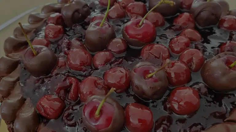 a chocolate cake with cherries on top