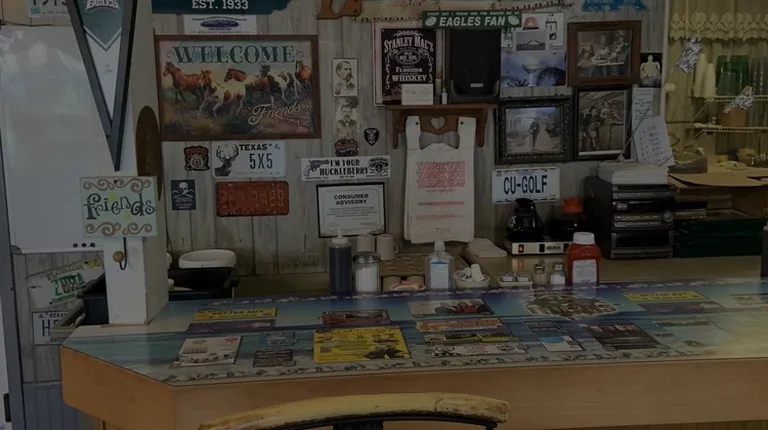 Real food and the best pancakes ever. License plates from all over the country. Busy but worth the wait.
