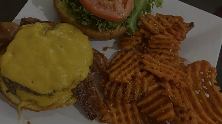 Fried Green Tomatoe BLT! With Sweet Potato Waffle Fries. Everything tastes so fresh and delicious. Definitely coming back soon