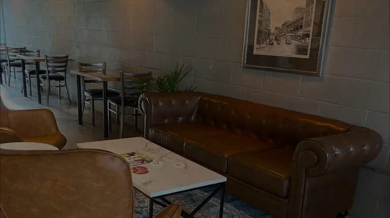 a row of chairs in a restaurant