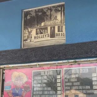 a blue building with a sign that says holley's bar b q