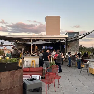 We stopped in here after a wonderful day of celebrating a friend's birthday. Some of the group are from Michigan so wanted to watch the game while enjoying a beverage. We opted for a few appetizers to share as well.Appetizers were good, your typical fried bar food, but the dips were really tasty. I enjoyed the fried cauliflower and corn nuggets the most! (Who doesn't love fried food!)First, they had an Autumn Sangria which 3 of us tried. It was a red blended sangria with a cinnamon stick & cranberries. It was very tasty! I then tried a Peach Cider that our server recommended. It was very good.After the game we decided to check out the rooftop area.. What a beautiful space. Large bar area and plenty of seating all around the rooftop. And a spectacular view, especially at sunset.