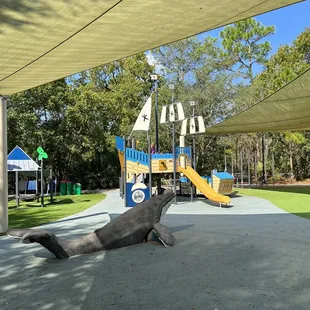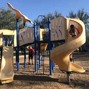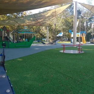 This playground has gotten a whole remodel I remember driving by and seeing it being demolished it was super cute before but now it's beyond adorable I've come here spermaticly with my kids but now I think we will be here 2-3x a week. I'm glad Jacksonville is finally remodeling their playgrounds and adding news ones. It also has shades to protect the little ones from the harsh sun especially that we live in such a warm climate.