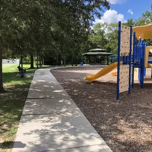 Outstanding park with bathrooms and a little trail for walking. The play area is great for kids from ages 2-10. They have toddler swings and regular swings along with a few slides. They also have a cool see-saw and a soccer field next to the park.There is a decent amount of shade also.