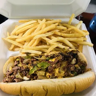 Cheesesteak and fries. Delicious!