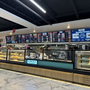 Think Deli style set up and some in-house seating offside but the dessert display is by far the most distracting along with their extensive overhead menu. Hot plates, pizza, Turkish delights and more! I'm almost positive there is well over 100 items on the menu. This establishment is tucked in the Aapna Bazar building off Beach blvd. right by the Beach Blvd Flea. There is also a euro-asian grocery in the same building. Staff were friendly and helpful. Food was prepped to order and the baklava selection sold by the pound! I was amazed! Eveything ordered was top tier and made me wish I had ordered more. Will visit again to try other desserts. I believe they cater too if you wanted to order in bulk.