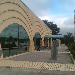This is my first review of a public library. I've passed this particular library several times and have always been curious about it. There is a decent amount of parking out front and around the side, however I couldn't help but notice how the lot was almost full! That's a good sign if you ask me. Once inside you are greeted with the information desk on your right and a large bank of computers on the left. There are plenty of large tables and several rooms to study or read. I was here for an information session on termites hosted by UF IFAS. I was surprised how large the meeting room was and how many people showed up to learn about this dreadful insect blitzing our communities. The library staff were friendly and helpful and directed me to the correct meeting room. The four star review is primarily due to how the building design is older and has an dated feeling about it. On my way out I noticed how large and spacious the inside is and also how full the library was even at 7 pm on a Monday! What a place to gather. We're lucky to have this library in our community.