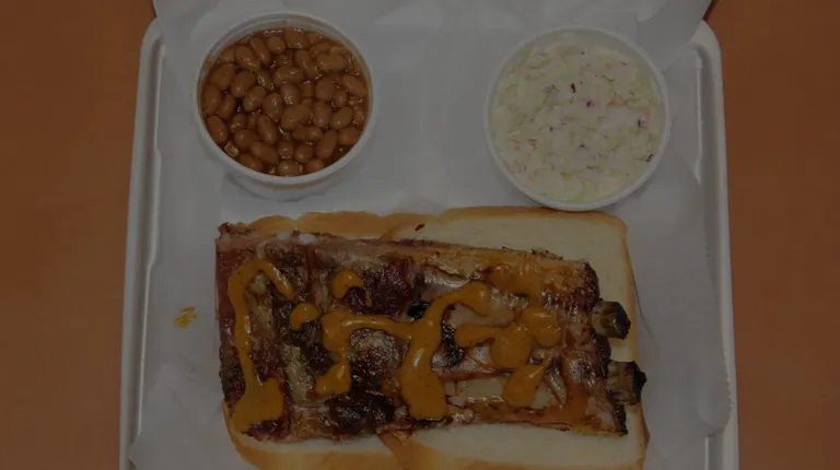 A succulent slab of ribs topped with the famous Jenkins' sauce.