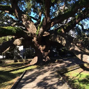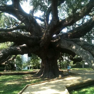 This is not your regular park this park has one of the largest trees in the South east.This Oak Tree is right in the middle of Jacksonville Florida how many city's can say that? As you can see by the pictures that the tree is so large the limbs are on the grown. I found parking not a problem ( we were the only people there) . I think the reason is its not well known by people outside of the city and the people that are from the city have been there at least ( or should) many times. At one point in time the city was going to cut it down to build a parking lot ( years ago) when they did not see the value of such a tree I am glad that the parking lot did not win over such a Tree of beauty. So... if your in the Jacksonville Down Town area or just passing threw on I-95 stop by and say Hello to The Treaty Oak its in a small park but, its what is there that makes this park what it is.