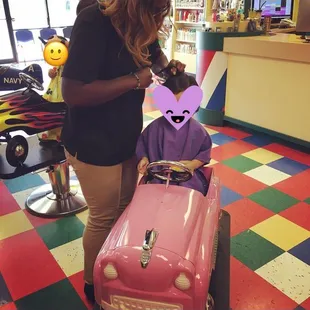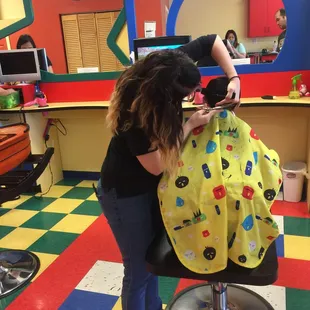 I took my 2 year old daughter here on 10/16 for her first salon haircut. The staff was amazing! They went all out! They allowed my daughter to pick a movie, from their DVD library, to watch during the cut and they gave her bubbles to play with to pass the time. Our stylist, Kim, was patient and kind. After the cut...the stylist gave my daughter a cute little braid with a butterfly clip, a spray of strawberry perfume, glitter hairspray, and applied glitter nail polish. I was so impressed and my child absolutely LOVED IT. She cried when we had to leave...lol. We were also given a "First Hair Cut" certificate, along with a lock of her hair. We'll definitely be going back for all future cuts!