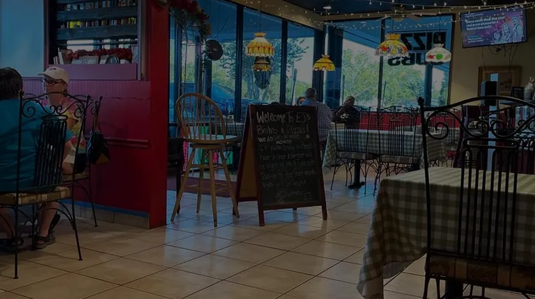 We came here with high hopes for pizza and calzones. We were let down. The calzone was soggy and barely room temperature. The pizza was burnt. The pizza did not have much sauce.Our server was in training and did an excellent job. He answered all questions and kept drinks taken care of. They have one table we seen outside next to the door. They are dog friendly outside. If a person sits there with a dog. They need to move the table away from front door. That dog was touching and sniffing everyone in and out of restaurant. We love dogs and have three rescue dogs. Just not comfortable being approached by a random dog when we walk out a restaurant. They do have military discount. They also tack on a 3% service fee if you pay with a card.