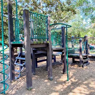 This is a cute little park, perfect for all ages. A small toddler playground and a larger playground are great for climbing. The down side is the only slide is located on the toddler playground, no slide for bigger kids. Nice, squeak free swings and a few different spinner toys you won't see at other parks. Lots and lots of shade!! And a nice field area perfect for playing football or having picnics
