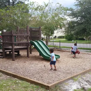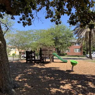 Cute little park tucked away in the beautiful area of San Marco and surrounded by some beautiful houses. They have some swings, a big slide and separate playground area for the young kids and old. There is also enough open area for the kids to run around or to sit and have a picnic. Even with the now heavy traffic of San Marco Ave. There is a gate that surrounds the whole park. The door to gate has a latch to it, so it can lock once you close it. They have a water fountain if you get a little thirsty along with a couple of benches to sit down and relax and enjoy some of the views. I like the big tree that sits in the middle of the park. It's the kinda tree that makes a lot of shade and a tree you can sit under when it's raining.With two kids, I try and make it a mission to visit all the nearby parks. Jacksonville has done a great job at fixing them, upgrading them & keeping them pretty clean. This was another successful visit.