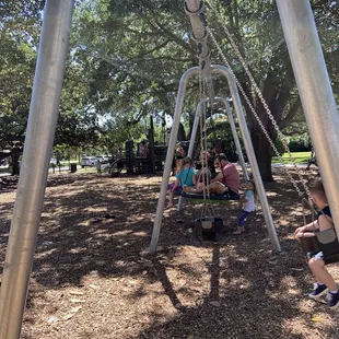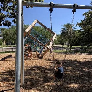 Landon Park is a cute, small little park on the corner of Landon Ave. and San Marco Blvd. It is surrounded by a black wired fence and contains some great playground materials, including a few swing sets, a few jungle gyms, and a few other structures. It is also nicely landscaped, with some great large trees that make amazing climbing trees! The limbs reach low to the ground and you can always see middle schoolers hanging out on it's limbs. It is situated nicely next to the riverfront, or San Marco Beach as locals call it, and just down the street from San Marco Square.Very kid friendly, but don't think that just because you are an adult you can't enjoy a good swing... especially after a few drinks in the square. No better or more exhilarating way to cool off on a summer night than with the wind in your hair. Just maybe don't attempt the jump landing from your childhood. Larger bodies = jumping hazards.