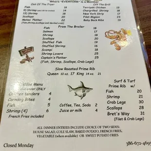 Simple menu but with decent food for very reasonable prices. Nothing fancy by far, but if you like basic American food or seafood, you should find something you'll enjoy.