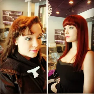 So I I have been searching for a new salon home for about 4 years now since moving to Jax. I have thin hair that I've been dying to grow out. I get a basic trim, no color, no style, nothing. Every stylist keeps cutting massive layers into my hair and chopping up my bangs even when I say not to..I went to Meghan at LocksMyth after calling around frantically for a same day appointment. I made an appt. with Foiled Rotten but sat in the waiting area for 17 minutes past my appt. time with no greeting or anything.... I walked in to LocksMyth and was greeted promptly. The salon is so pretty and clean! I was seated immediately and Megan was very attentive. She understands my struggle since she is growing out a pixie cut. Hallelujah!!! I was in and out in 30 minutes! She washed, cut, and styled my hair. The price was very reasonable. It was $39 vs. the $55 i used to pay elsewhere. I am super happy with the haircut and WILL be going back. I attached photos to show how straggly my hair was before and a photo that I showed Megan for my long term goal. I'm very pleased!