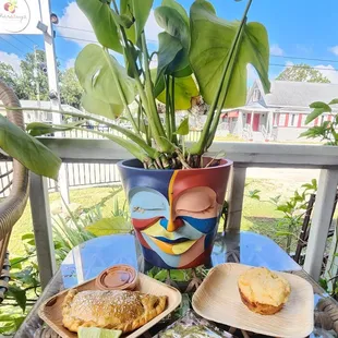 What a cute coffee spot; perfect for St. Augustine's vibe! I fully appreciate that this spot is a beautiful restored old home turned into a coffee and light bites cafe. You won't find gems like this in Jax. This was worth the 45 min drive from the city! side note (Maracuya is open until 4; not 3 on Saturday's like stated here on Yelp) Very pleasant surprise since I arrived at 2:30 on Saturday. I saw Maracuya post delicious drink specials the past few weeks on instagram and made it a point to come out and try the food and coffee! (It was a coincidence that I just happened to make it out on mister T biscuits bday) You are immediately greeted with a smile as soon as you walk in by the sweetest barista who explains everything in detail for first timers like myself. She welcomed the bday boy which was very nice of her since it was raining out and I couldn't leave him in the car with the windows rolled up. Normally I'm polite and leave my 45lb dog in the car but I did not expect the rain on my quick lil visit. This was a very sweet gesture. I ordered the special latte (white chocolate mocha with lavender whipped cream) I saw on Instagram and it was just as magically delicious as I thought it would be. I also got another special that day - the chocolate banana espresso cake! So dang good! The other two scrumptious food options I tried: the beef empanada that comes with a lime slice and sauce, and the muffin which is the Ahi de gallina - which had a delicious savory filling inside. Next time I visit I'm making sure to Not eat lunch first so I can try more things. I also noticed they had a cute lil outdoor space both on the front patio, and on the back porch area. This would be the perfect spot to bring a book or work remotely for lunch. Will also be checking that out on my next non rainy visit out here.On the way out I grabbed a passion lychee tea that came with edible glitter inside! How cool! I love the lil touches this coffee shop puts into each menu item to make it extra special for guests. Give Maracuya a try - this just became my new fave cafe to visit when in St Augustine. If you visit their Instagram page, they tell you where you can park right next to the shop for free. I found parking out front but parking should not be an issue; plenty of free parking right across the street.