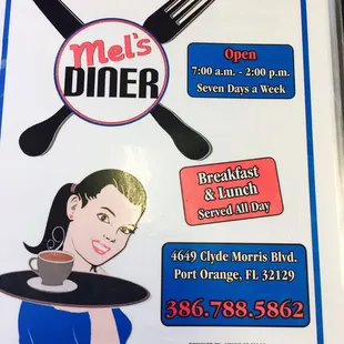 the menu for mel's diner