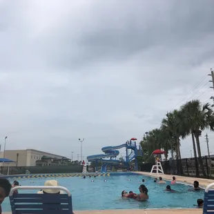 It was our first time going to this pool. I thought it was awesome that they had a huge slide but it was closed. I thought it was great they had an obstacle course on part of the water but you had to go through the swim class, etc to be able to do it (I understand for safety but our 4 year old with his chest/arm floats was disappointed.) The actual pool was okay but not much to do in it. They just had one basketball hoop and possibly one basketball. I loved how they had a big kids area that was fenced off with different water things. That only lasted 5-10 mins for us. Overall, it was okay. I would not go back...