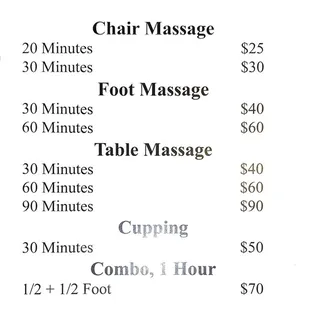 I went in today for an hour reflexology foot massage. The massage therapist was on her phone through half of the massage, which was NOT reflexology. Considering all she did was text with one hand and try to massage with the other was a joke. I would not recommend this facility and found it extremely rude for her to text the entire time, will NOT be back
