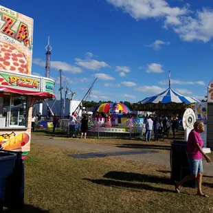 Going to the Fair on the last day be prepared to see the last of the BIG fun, meaning all of the baby animals will be gone and so will all of the big crowds, but if you like fried foods and short ride lines then the last day is the day for you.I am a bit surprised that no one has put this Fair on the Yelp map before me. It's a pretty big Fair, it has lots of parking, the rides look brand new and quite frankly as safe as they can possibly be. Fairs are my "let's eat everything possibly fried in one day event"....did I just quote myself?...yes I did. If its possibly fried or on a stick to eat you can get it at the Fair. Nothing really tastes like funnel cake cake at the Fair!There were alot of vendors selling all kind sorts of items from jewelry to candles, knives, taxidermy services and let's not forget the political folks trying to get your vote. I was also able to taste some amazing honey from Hoot Owl Honey Bee Company. They had honey from the different types of their flowers and bee helpers. I love a good raw honey and this is some of the best I have ever tried. I am including a picture of their business card in my pictures if you love honey and would be interested in purchasing from them. The wildflower was a light honey more like the honey bear honey and then they had this amazing Tupelo honey which was dark and rich. I purchased both because they were both so good but so different. Last day of the fair entrance is free but like I said you do miss out on the animals and the smells of the animals, but you can enjoy all of the other fun without the crowds.Lots of Port-o-pottys so if you have to go....no lines.