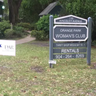 I go to the Orange Park Women's Club monthly for a DAR meeting. The meeting space is a pretty good size. There are roughly 90 people at each meeting and there is enough room. There is also a kitchen and restroom in the room which makes it nice. The space could use some updating but really the space is fine for what it is there for. There is plenty of parking around and while it can get crowded, I have arrived late and never had an issue finding a spot. I would like the walking path lit at night but other than that the space is perfectly fine.
