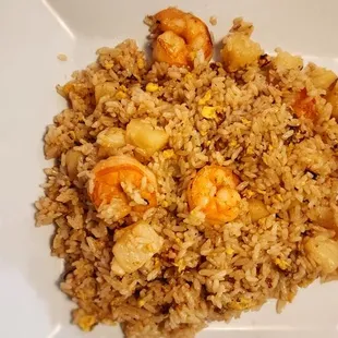Ordered a Mexican Sushi Roll(not pictured), it's was okay wasn't a fan of the warm cream cheese. Got a side of fried rice flavor was good but could've used an onion to boost flavor, tad bit on the oily side. Ordered Crab Rangoon, wasn't impressed very oily, a bit over cooked and filling was sweeter than any other Rangoon I've tasted. Wife ordered the Thai pineapple fried rice w/Shrimp, portion size was good flavor was okay(strong pineapple flavoring) nice sized shrimp seasoned well. Would try again in the future