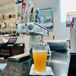 We stopped here inside the airport before our flight. Decent drinks and food and good service. We ordered a blackened mahi sandwich and blackened mahi on a Greek salad. We were pleasantly surprised that both were delicious. Servings were also very large which was great since our flight was late. It's a little cramped in there, especially with bags, but our server kept our drinks flowing which eased the pain. Would definitely stop here again.