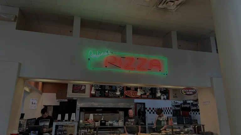 Really, really good NY styles pizza. From a food court? YES! straight up it's my favorite in the area. PS I lived in New York for eight years.