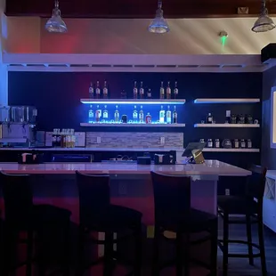 a bar with chairs