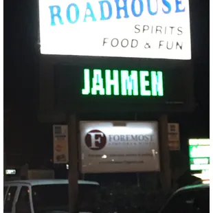 the roadhouse sign at night