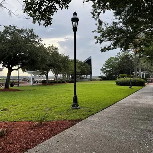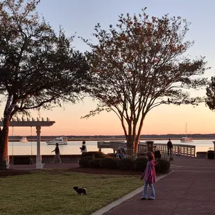 This is a beautiful park with lots of places to sit or walk. There are really cool swings (large bench-like swings) looking out over the water. There's a nice outdoor Amphitheatre and a pretty fountain. This would be a nice place to walk after having dinner or to watch the sunset. There are a few piers nearby to walk out onto and get a little closer to the water. It's a nice, relaxing atmosphere and I would recommend for families or individuals. Pets are welcome, too! There is a new restaurant getting ready to open n nearby so it may be fun to check out if you want a little day trip from Jax.