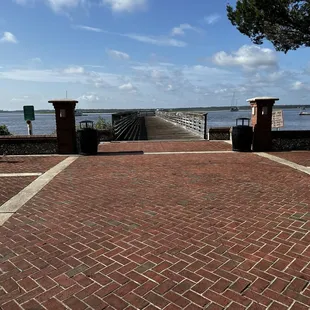 Beautiful park on the waterfront in St. Marys. It is nextdoor to the Cumberland Island National Seashore Visitor Center, and ferry dock. There is a dock off the park where you can walk out and look at the St. Marys River, and the land you see from there is actually Florida. The center of the river is the line between GA/FL.There is an architecturally interesting performance stage in one corner of the park, a fountain, picnic areas, flowers and formal garden plantings, and a fun playground in one corner by the road. Note there is a high brick wall separating the playground from the street.This park hosts town events and is a pretty lively place, visited by locals and tourists alike.Dogs allowed on leash.