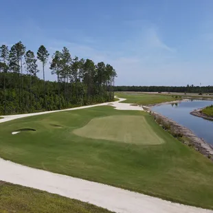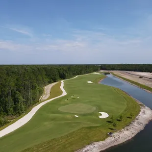 This Golf Course is the first course constructed in Northeast Florida in more than 10 years! Only open about 30 days the course is in great shape. Greens were rolling very consistently. Not a lot of rough from tee to green but bunkers were links style with the high walls and very well maintained. Once you get near the green, lots of hills and undulations and greens were very challenging.Clubhouse is not complete yet but they do have a Top Tracer practice facility. Currently no liquor license so they are including 4 free drinks - soda, Gatorade, or beer - for all until they do get everything set up. They also provided free caps - not sure how long that will last - but the freebies were definitely appreciated. They have a food truck stationed in the parking lot to accommodate your cravings.Friendly staff - very cordial from beginning to end. Great service all day. At $120 for green fees, it was good to get out while the place is still new. I don't see frequenting this course too often at those costs though. It's a semi-private course in a 55+ community.