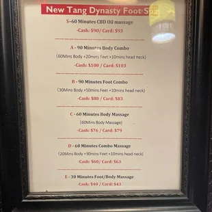 Most recent menu of services. 8/8/22