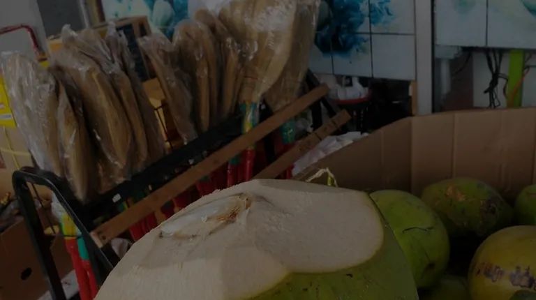 a person holding a coconut