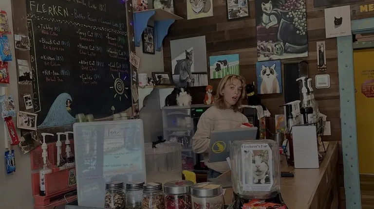 I really can't say how great this place is! I got myCat Luna there, she jumped on my shoulder and I knew she was the one. They offer different kinds of lattes and teas if you buy one you can go in the cat room or for $5 a person you can go in the cat room and play with the cats. It's a non-profit rescue. I love my girl Luna and think this a great place for cats!