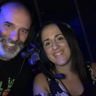 Taking in a show. The set of Mama Mia.