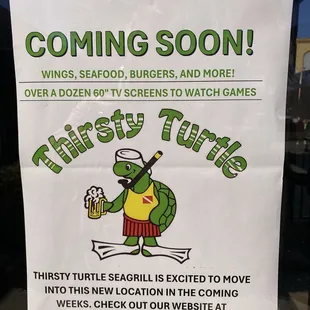 Lived near and visited Thirsty Turtle in Juno Beach many times over 20 years. Very much a favorite so I was happy to hear we would have one in this area.I visited on a weekday evening around 8pm. A couple of people at the bar and two tables were occupied. I stood by the hostess stand for a few minutes. There wasn't an employee to be seen. No hostess, server or bartender. I thought this was weird but chalked it up to newness issues but after a few more minutes it just didn't sit well. I just left and went somewhere else. Never spotted an employee.Obviously I can't comment on the food but it did seem to have a weird vibe unlike the Juno location. It was sparsely decorated with just some tvs on the walls. Hopefully they figure it out. It would be nice to have another option in this area. That is a tough location. Apparently they had been open a month and I had no idea even though I'm in the Publix there 3 or 4 times a week.I will go back maybe during the day and try the food and hopefully I can adjust my rating.