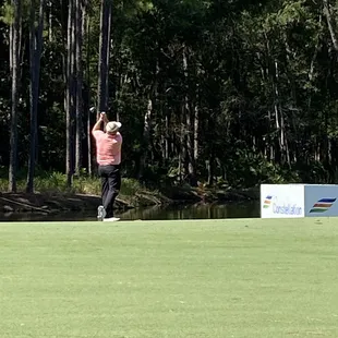 Attended the Jim Furyk and Friends PGA golf tournament. The club house was nice with an old style private club feel on the river. There are private meeting rooms, a lovely dining room and an outdoor pool. Lots of trophies and pictures, starting in the 1920s, adorn the walls. The course is well kept. The trees are old with Spanish moss, and there are lots of pine trees, some water and an adequate number of bunkers. The atmosphere is relaxing. The people are friendly.
