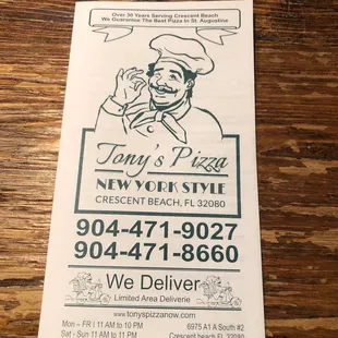 Arrived in the area for a few days. Wanted to go to the local seafood places but it appears they are all closed on Monday's. So we went with a time old favorite: pizza. Looked on yelp for a local run place and picked Tony's Pizza. Sigh. I thought ok New York style. Nope. Same thickness/thickness as normal pizza crust. Ordered xl sausage and pepperoni. Sausage was all exactly the same size- that made me think frozen right away. I read reviews that the sauce was good. I don't know what these people are used to but this sauce had no flavor. The entire pizza was blah. We eat A LOT of pizza lol, it's my fave food. And we threw away 3/4 of this pizza. It hurt my heart putting pizza into the trash. We also ordered garlic knots. Same thing: no flavor. Very disappointed