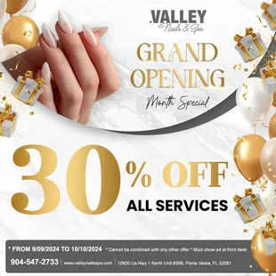 I was the first customer for their soft opening today. The place is beautiful !! I have been out of the loop of nail service for the past 8 yrs. so today was an exciting day for me to get my nails back on and I had some big expectations for how I wanted this to go. I like acrylic, and I like thin natural looking with a splash of fancy lol.So first let me say I was thrilled that most everyone had really good English (this was important to me because I wanted a clear understanding of what I wanted done) Sonni graciously meet me early because I had an engagement to be at today. She was on top of what I wanted and made sure I was happy with the results then she had Sophie finish off my glitter line and top coat. Sophie was very nice and was very good with her skills. when my hands were finished I moved over to Nick for a pedicure and he did a fabulous job as well, everyone in the building was very customer oriented and friendly. I can't wait to go back! Their grand opening will be on Sunday Sept 8th. Go online and book your next appt with them!